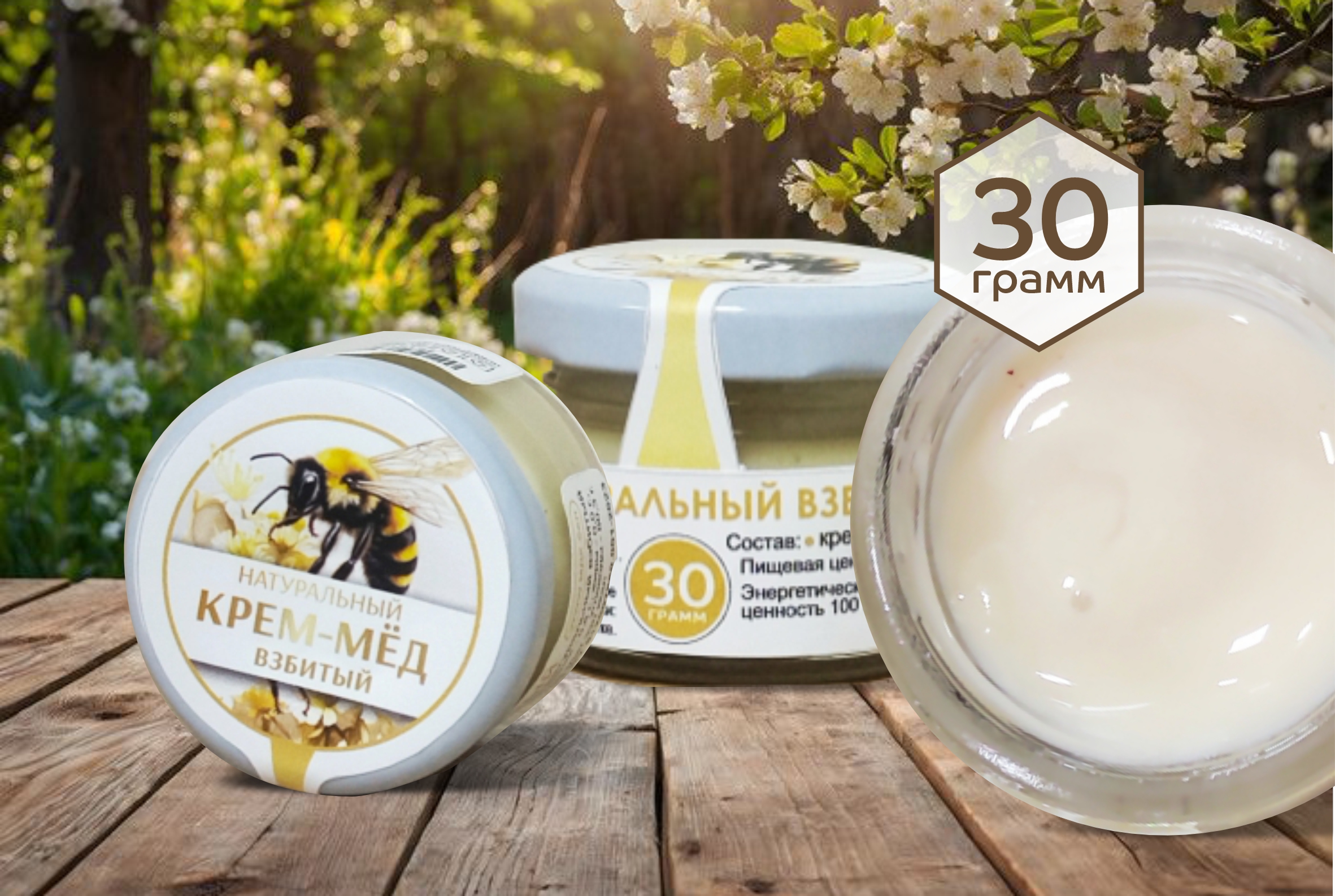 Взбитый мёд без добавок – для тех, кто считает, что мёд самодостаточен и не нуждается в дополнениях. Крем-мёд без добавок не притворяется ничем другим – его вкус зависит только от сорта мёда, от вида растений и цветов, опылённых пчёлами, и в некотором роде – это его достоинство. Это мёд с сюрпризом: вы можете уловить в нём привкус перечной мяты, лёгкий аромат луговых цветов или пряную горчинку гречихи. После взбивания он приобретает очень светлый, как сгущённое молоко, оттенок и изумительную однородную консистенцию – крем-мёд перестаёт быть липким и просто тает во рту.
